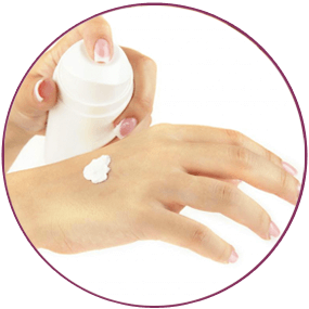 Coloque uma pequena quantidade de creme na palma da sua mão
